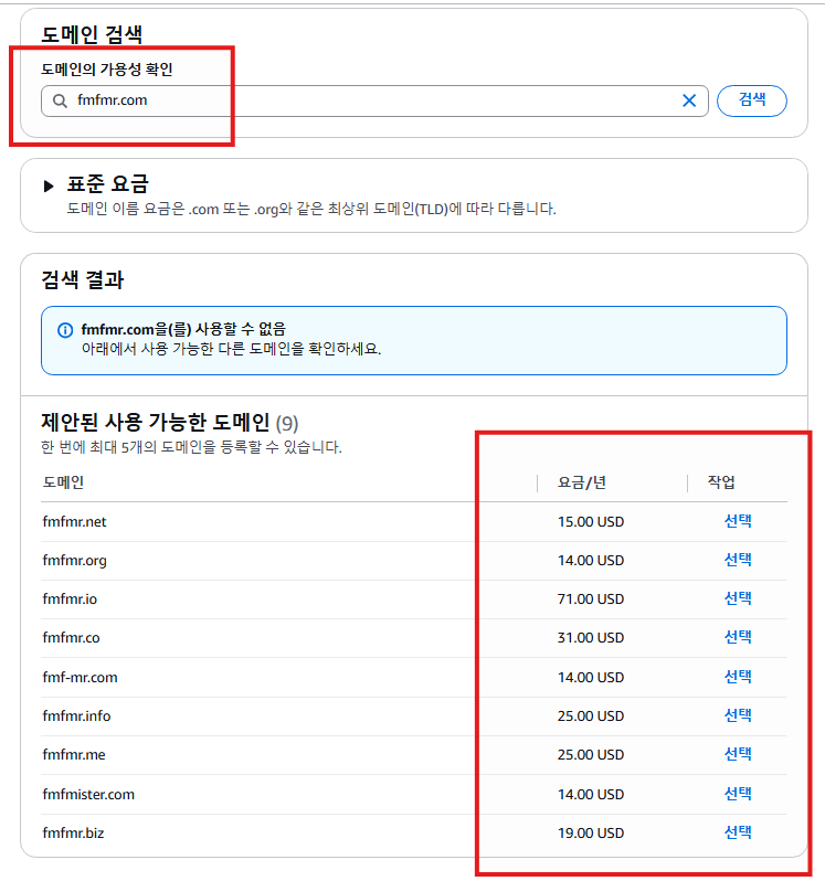 검색 후 마음에 드는 도메인 클릭 여기는 비싼 거 밖에 안나왔지만