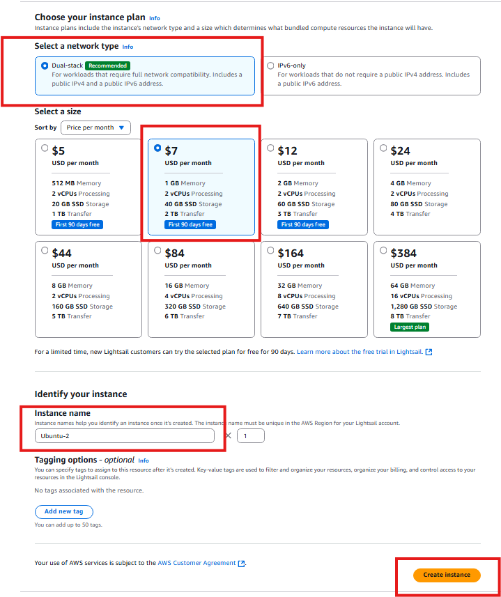 Select a Network type 에는 IPv6-only 로 가면 3.5 달러짜리 사용할 수 있는데 관련 문서가 적어서 패스...