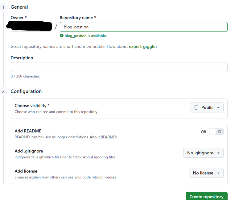 새로운 repository 를 생성한다.