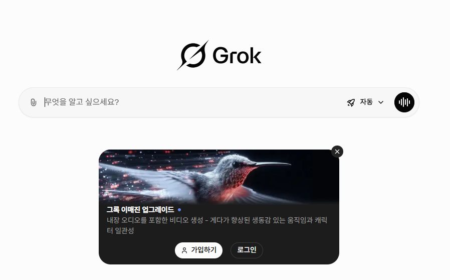 요즘 유투브나 인스타 릴스 등에 ai 영상이 많이 올라온다. 이런 영상 어떻게 만드는 거야??클릭 10번안에 만드는 ai 영상 가이드 시작합니다! https://grok.com/ 으로 들어가줍니다. 이상한 사이트 아니고 Tesla 의 일론 머스크가 만든 사이트이니 괜찮습니다!들어가서 가입해줍니다. 간단한 이메일로 가입!왼쪽의 상상 클릭! 클릭하면 여러 이미지가 나옵니다! 하단의 입력창에 자신이 원하는 이미지 입력해주세요! 아니면 옆의 클립을 클릭해서 파일 업로드도 가능합니다.이미지를 한번 업로드 해볼까요? 이미지를 업로드 하자마자 이렇게 동영상을 만들어주네요! 동영상을 해당 버튼을 눌러서 다운로드해서 사용도 가능합니다!생성된 영상생성된 영상이에요 더 재밌게 만들어볼까요??아래 입력창에 이미지와 같이 써주..